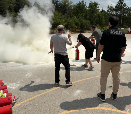 Üniversitemiz Sağlık Kültür ve Spor Daire Başkanlığında görev yapmakta olan personelimiz için 16 Temmuz 2025 tarihinde AFAD işbirliği ile "Yangın Farkındalık Eğitimi" ve "Yangın Söndürme Tatbikatı" gerçekleştirilmiştir.